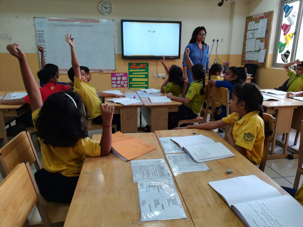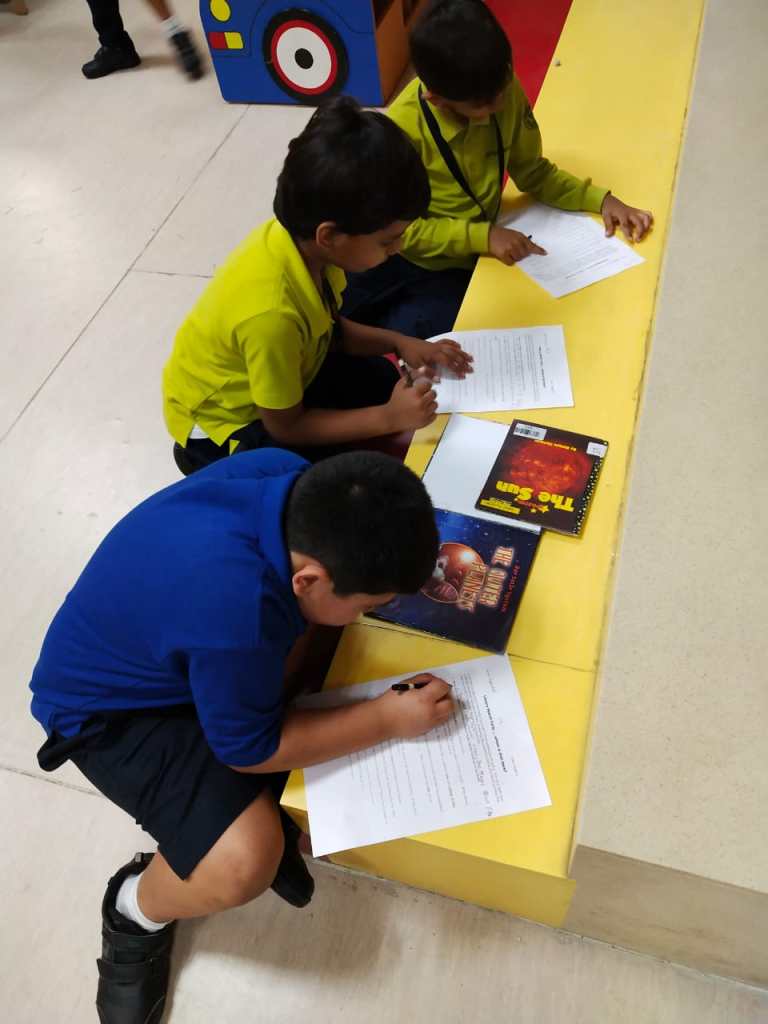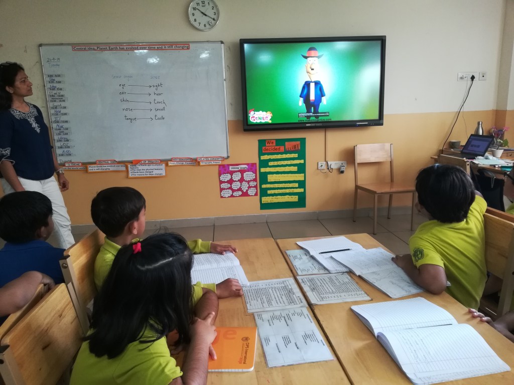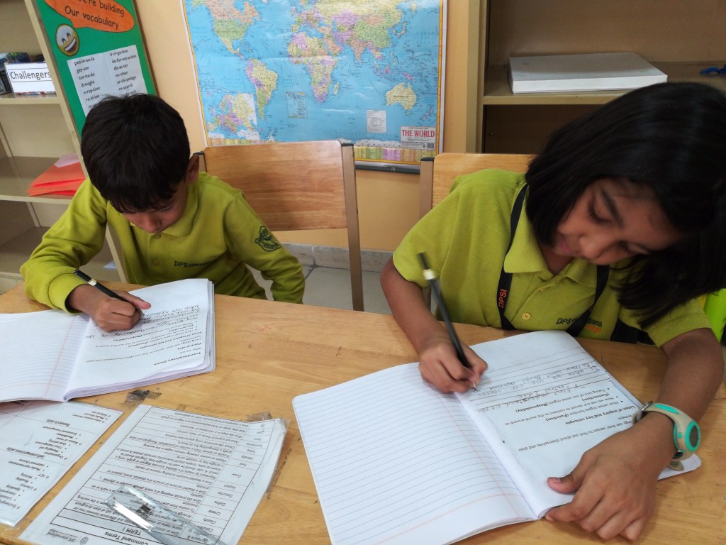 The students were tuned into multiplication with a story of the ‘one hundred hungry ants”. Through a card activity they identified ‘arrays’ and the number of items in each row. They reflected on their understanding by a visible thinking routine – CONNECT EXTEND CHALLENGE. They furthered their comprehension of the terms ‘factors and products’ and practiced time tables for 2,3,4,5.