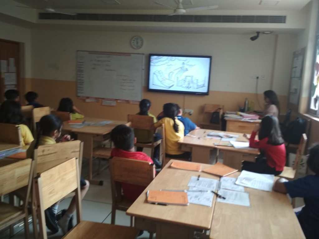 In order to enhance their critical thinking skills and speaking skills, students discussed and wrote a passage after watching the documentary जलवायु परिवर्तन : फैसले का समय (Jalvaayu parivartan) . Students used a graphic organizer for sorting causes of environmental pollution, reasons, effects and suggestions. Their knowledge of spellings was peer assessed using a spell bee activity.