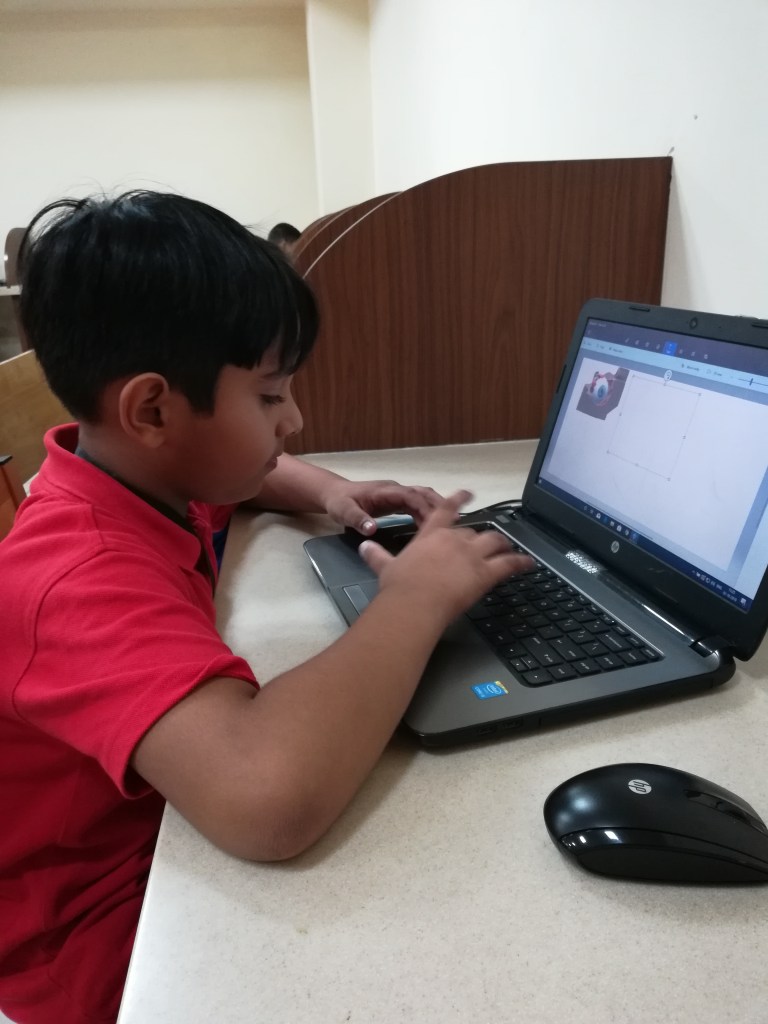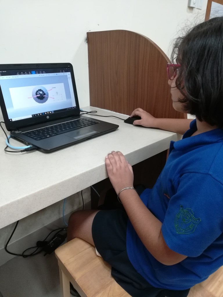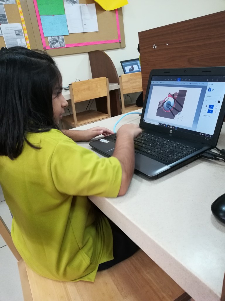 Students constructed a 3D model of a human eye while using the magic select tool and 3D doodle tool in Paint 3D. They labelled different parts of the human eye using 3D text. They also learned how to save the 3D model as a 3D object in FXB format. Within paint 3D, students used the online 3D library to browse and access 3D models for use in their creations.